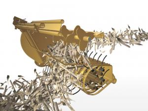 His hydraulically-driven powered rotor mounts above the pickup assembly and kicks the stalks up. Star-shaped plates that mount onto a hex shaft feed high volumes of corn stalks into the baler. The power rotor reverses if material starts to plug.