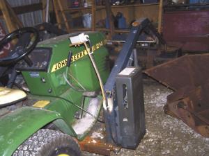 "The load on front can cause the tractor's rear wheels to spin, so I bolted a pair of 50-lb. front-end weights for a Deere 4010 tractor on back," notes Chaney.