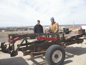 A sheet of 1/4-in. steel welded to the upper frame at the hitch end created a mounting plate for the 5 hp engine and hydraulic pump. It also serves as a seat for the operator.
