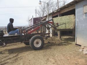"I have three acres, a milk cow and some calves, just enough to need some hay," says Tucker. "I don't care for the little hay bales, so I needed something to handle the big bales when they came in stacked two high on a trailer."