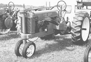 The first thing you notice about the tractor is the "hooker header" mufflers that Bauer bolted onto each side of the engine. Also, the tractor is longer than other "A's".