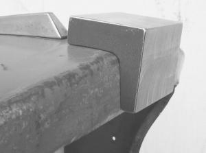 The tool consists of an L-shaped steel die that's machined to the original shape of the factory hood. It's made from 1-in. thick steel and measures 4 in. long by 3 in. wide and 1 in. deep. A body hammer is used to re-form the hood nose into the die. Once you complete a section you move the die and repeat the process.
