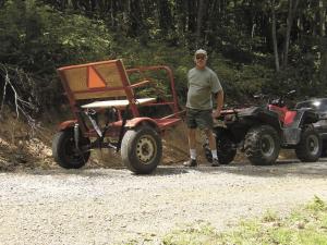 The 5-ft. long tongue is made from 2-in. sq. tubing and has a 2-in. receiver hitch. As a result, Howie can haul the ATV in his pickup and pull the cart behind.