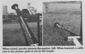 Latest innovation in planter markers is the "Telemark" which telescopes to half it's original length ù eliminating the fold of conventional markers and allowing you to plant about 16 in. closer to fence rows, trees, poles and other obstacles in the field.