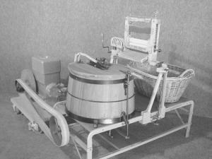 "Many of the most elegant washing machines were powered either by gasoline engines or electric motors. Almost any æold timer' can remember getting a hand, a hunk of hair or some other part of the anatomy caught in the wringer. Many have scars to prove it. Not only were the wringers dangerous, most of the early machines had open or unshielded gearing. Early electric machines had no grounding, and many had open terminals so you could get shocked even when the machine was not running.