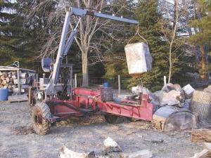 Froehlich's boom can handle up to 1,000 lbs. "I've split pieces 4 ft. across," says Froehlich. "The ram has a 48-in. stroke and is built to the specifications of a 42-ton splitter."