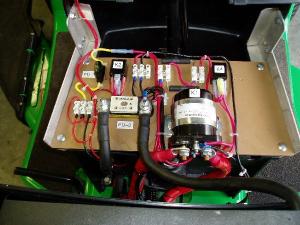 For a power supply, he went with four 12-volt marine type, lead-acid batteries. To keep costs down, he bought "blemished" batteries, which he tries to baby, never allowing the charge to get under 37 volts. Eight weeks later, when completely reassembled, the "new" mower weighed 620 lbs. Little is confident that he could do another conversion in half the time.