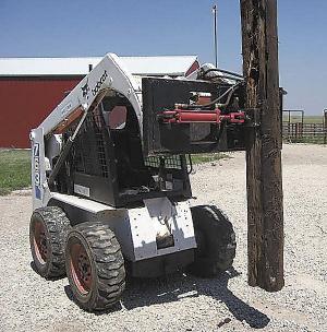 "This puller grabs posts down low. You only need one person operating a skid loader," Gorrell says. "I have pulled T-posts, hedge posts, creosote posts, railroad ties and even cedar trees with it.