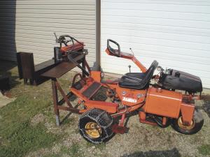 "I tied the cylinder into the pump on the hydrostatic drive," says Smith. "It's not real fast, but it has plenty of power, and I can ride it over to whatever wood needs splitting."