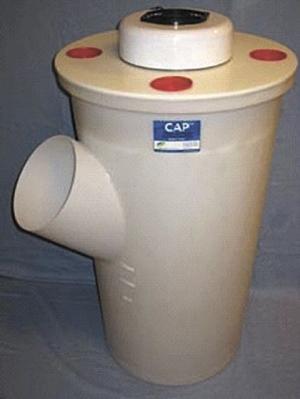 A CAP 600 is 30-in. dia. at the top and narrows down to 26 in. at the base. It's 48-in. tall and is designed to control pollutants in areas up to 5,000 sq. ft. It's equivalent to a venting flow rate of 1,000 cubic feet per minute, yet only releases CO2 and water. The $8,000 unit can consume and destroy up to 60 lbs. of pollutants per day.