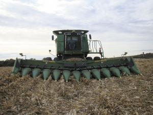 Keven Markt was frustrated because his steep terraces had limited him to an 8-row header. So he finally came up with a design for a 12-row flexing head that lets him use the full capacity of his Deere combine, even on the most uneven ground. Each wing of the head can raise or lower 18 in. automatically, as needed, thanks to the Headsight header control system Markt used. A limited number of the new headers will be available in 2010. Call Markt Harvesting at 816 390-7840.