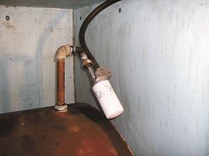 "I pull the oil that we use for our heater off the bottom of the storage tank, so I built a frac or separating tank in line before it goes to the pump. This allows me to bleed any water or antifreeze. I like this method better than using a suction tube for the heater because I don't have to deal with the hassle of a foot valve in the tank."