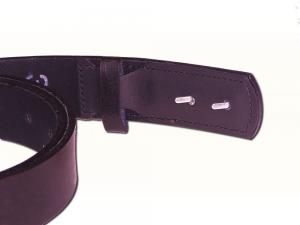 Other customers have metal allergies, and the metal plate holding the two angled prongs is between the leather so no metal touches the body. Also the belts don't pinch like buckle belts on people that have stomachs that hang over the belt.