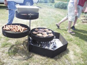 "I'll do a batch of potatoes on one grill, move them up a level when just about done, grill a batch of sweet corn and move them up a level and transfer the potatoes to the highest level," explains Matt Trelstad, T.M. Manufacturing. "That leaves the lowest grill open to fix steaks or chops close to the fire."