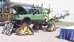 Hanson says he's willing to custom-build the pickup sprayer for others, either with tracks or tires. The price for a pickup with tires ranges from $80,000 to $100,000, depending on options.