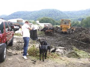 Dick Gallien says his cows and goats start the composting process for lawn clippings dropped off at his community compost site. Signs point visitors from nearby Winona, Minn., to drop off grass clippings and other yard waste at the edge of the cow yard. Periodically he pushes what remains out of the paddock and onto a big compost pile, working and turning the material with a bulldozer. Brush that is dropped off – for a fee – has other uses.