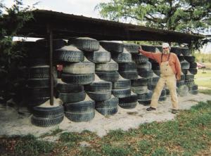 “I built it in my spare time. It took a year but it was worth it,” says Myrick. “I have a small welding shop and do some tire repair work, and over the years I accumulated a lot of old tires. It would’ve cost $3 apiece take car tires to the dump, $5 for truck tires, and $12 for big tractor tires.