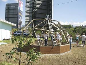 The domes are constructed with 2 by 4-in. Douglas fir struts, polycarbonate greenhouse glazing panels, a treated wood or redwood base, and 16-in. or higher foundation walls.