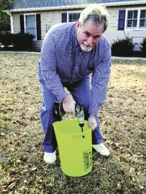 “The operator simply pushes the bucket into the ground where the sample is to be taken and runs the auger through the collection tube into the ground,” explains Neel. “The ruler on the side of the bucket helps ensure consistent sampling depths.”
