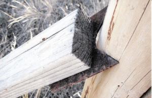 “The biggest challenge for me is to set posts that remain absolutely vertical while tamping dirt around the base,” says Knoche. “One day I grabbed some scrap 2 by 4’s to prop up some posts for a shed front, but they kept slipping. I found a stack of bent T-posts, popped the metal spades off, and used drywall screws to attach the spades to the ends of 2 by 4’s.”