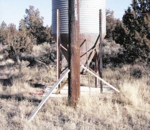 Knoche says that with the use of a level, he can use three of his homemade props to hold a 17-ft. pole in position.