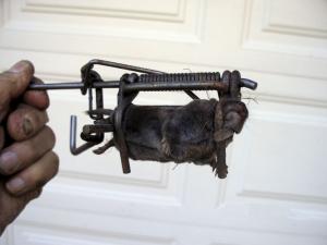 Sprick uses his setting aids similar to beer can openers to pry open the arms and set the trap.