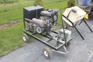 Orr fabricated a frame out of 1 by 2-in. steel tubing and mounted it on lawn mower wheels. He bought a $500, 10,000-watt alternator with voltage regulator and initially mounted it directly to the engine.