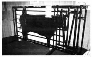 "It's a great space saver," says Dennis Fisher, Sisseton, S. Dak., about his 30-in. wide, 7-ft. long livestock chute that can be collapsed and folded out of the way along the inside wall of any livestock trailer. It can also be used in alleys, calving rooms, sick pens, etc.