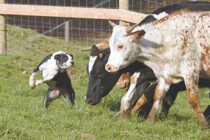 Cow Dog Bred To Stop Herd Cattle LIVESTOCK Beef If you’re going to have a dog why not have one that can work and hang out with you? For team ropers and people who work cattle Marvin Pierce recommends Hangin’ Tree Cow Dogs The breed was developed by Gary Erickson over a couple of decades specifically with ranchers in mind “The breed is unique because it will stop cattle and bring them to you ” Pierce says noting most cow dog breeds can do one of the tasks but not both With their innate herding instinct and proper training the dogs track and find cattle herd them and move them to where desired The shorthaired medium-sized dogs 35 to 65 lbs also instinctively hit both the heads and heels of cattle To achieve fearlessness along with loyalty and intelligence Erickson started with four breeds The Catahoula Leopard traits include a slick coat to easily shed dirt and burrs and the ability to trail find and hold cattle The Australian Shepherd added courage and the ability to hold cattle The Kelpie added herding instinct and short hair along with endurance Finally the Border Collie has an intense herding desire and is easy to train and handle Erickson named the breed after his ranch’s brand Hangin’ Tree The breed has become an important part of Pierce’s lifestyle He initially purchased dogs from Erickson for team roping and working cattle on his Oregon ranch Now he raises and trains the dogs and puts on cow dog demonstrations He’s written books and made videos about training and working with them “The biggest thing is you have to learn how to train them People who don’t know how can ruin a good dog ” Pierce says One of the most important things to do is to keep them from getting hurt By instinct an 8-week-old pup will try to fight a goat for example The typical price for registered pups is about $650 Older dogs with some training start at $2 000 Pierce has sold Hangin’ Tree Cow Dogs to customers in Canada and the Deep South so they can thrive in a variety of weather conditions Contact: FARM SHOW Followup Marvin Pierce Pierce’s Cow Dogs P O Box 911 Newberg Ore 97132 ph 503 476-4247 or 503 628-6049; piercescowdogs@gmail com; www piercescowdogs com