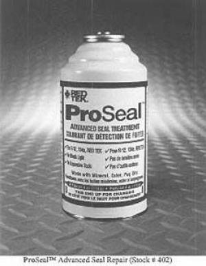 ProSeal is a formulated system designed to seal leaks in both metal and rubber parts of air conditioning and refrigeration systems, improving their efficiency. It’s chemically activated by moisture at the leak site to form a permanent seal. Sells for $18.50 per can.