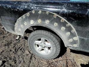 Rusted-Out Pickup Fitted With “Tire Fenders” PICKUPS Miscellaneous Dave Gilbertson needed to replace the rusted-out fenders on back of his 1995 Mazda B2600 1/2-ton pickup but he didn’t want to spend the money at a body shop So he came up with an inexpensive solution He cut the sidewall off a rear tire from a small tractor then cut it in half to form a pair of 1-ft wide arches He then bolted the arches onto the pickup The inner part of each arch faces outside and forms a bulge somewhat like a factory fender “It was a good way to keep an older pickup going without having to spend a lot of money ” says Gilbertson “I bought the pickup 2 years ago with more than 200 000 miles on it for only $200 The front wheel fenders were still in good shape but the rear wheel fenders had rusted so bad that most of the metal in a strip about 2 in above the wheel was gone My tire fenders bolt onto the good metal that was left ” Gilbertson does a lot of gardening and yard work and says his small Mazda is really handy for those kinds of chores “I don’t drive this pickup on the highway much so I’m not too concerned with how it looks But it helps that I have a black pickup because the tire fenders blend in with it ” Contact: FARM SHOW Followup Dave Gilbertson P O Box 123 Fosston Minn 56542 ph 218 280-4248; Dagilbertson43@gmail com