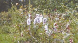 “Despite all my efforts to enrich my soil by mulches and other enrichments, keeping the plum curculio, the codling moth and especially the apple maggot from rendering my apples inedible has been a losing battle, until I started bagging apples,” says Eliason.