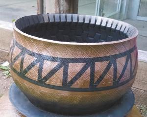 The venture started accidentally when the couple decided to do something with four old tires Garrett had taken off his pickup. He used “brute strength” to turn them inside out and cut in a design with a sharp knife. After cleaning them thoroughly, Atwater painted them. Others noticed and asked if the couple could make more, and they’ve been making tire planters ever since.