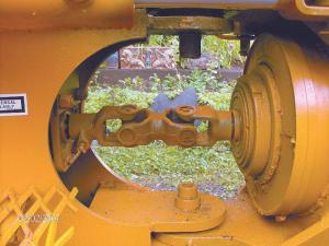 The skidder’s engine is coupled to both rear ends by No. 100 roller chain at a 1 to 1 ratio. The machine steers by bending in the middle via an orbital steering valve and two hydraulic cylinders. The two halves of the skidder are independent of each other, so all wheels stay on the ground.