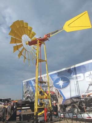 The patented Phoenix 10 kw windmill was on display at the recent Husker Harvest show near Grand Island, Neb. Mounted on a trailer, it can be easily transported to different locations. It’s also available as a stationary model. A 25 kw Genesis stationary model is also available.