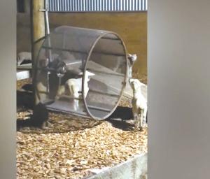 “I raise up to 300 orphan lambs, and even when they can run outside in the pasture they’ll still spend a lot of time in the shed either eating, playing or snoozing in the sun. They appreciated some ramps that I had previously built to run around on, so I thought they might like running on a spinning wheel, too,” he says.