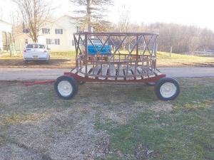 “There's virtually no hay waste compared to feeding bales on the ground,” says Donnelly “because with the bale up on the platform, cattle have to work harder for the hay so they waste less. The 3-in. spacing between boards allows water and snow to drain. The angle iron brackets allow the beams to flex as I move the wagon.”