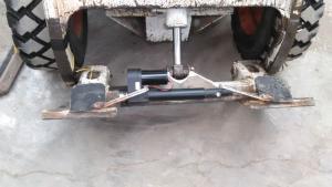 The actuator was about a foot short of the length needed to attach to the 2 levers. A local blacksmith machined a couple of 6-in. long brackets to fit on the ends of the actuator and attach to the locking levers. He added pivot pins to connect the brackets and the levers.