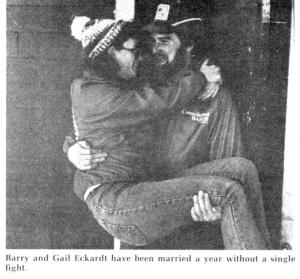 Not typical wedding vows, but Barry and Gail Eckardt's courtship was offbeat, too. They were not high school sweethearts; nor were they introduced by a mutual friend. Barry never hustled Gail in a single's bar, but neither did their eyes meet at a church social, either.