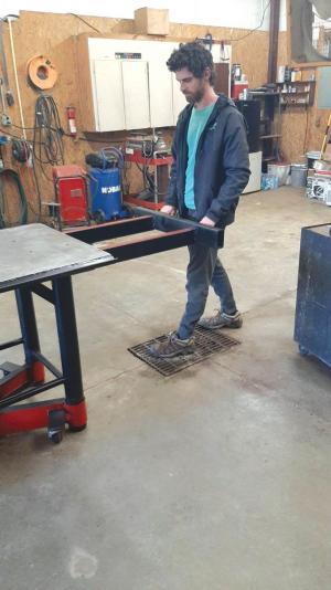 One end of the table can be lengthened by pulling a pair of telescoping steel tubes out from under the table. “The extension leaves that end of the table open so we can weld from underneath,” says Young.