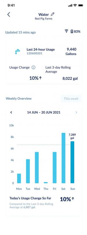 A 30-hr. battery backup on the gateway ensures it can still send data even if power to the site is lost. It also ensures a power lost alert is sent. Temperature and water data can be vital for animal health and productivity, especially in extreme conditions.