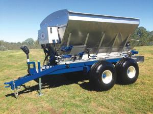 Twin Axle Tandem Spreader FERTILIZER APPLICATION The Newton Crouch company has been in the spreading and spraying business since 1940 They claim their spreaders yield the flattest most uniform spread pattern in the industry Their products are used throughout the United States as well as in Canada Mexico Columbia Japan Belize and Thailand All Newton Crouch spreaders and sprayers are designed with as few moving parts as possible to make for low-maintenance simple operation They also come equipped with variable-rate and controller-driven technology Most equipment is compatible with mounting on a chassis pull-type or 3-point hitch The Newton Crouch Tandem Spreader has two axles making it a versatile tool for spreading fertilizer lime plaster and dry chicken litter The NCI Model 47H Tandem Axle Spreader is the heaviest-duty model in the brand’s Spreadit Series This fertilizer and lime spreader offers a 233-cu ft capacity for a maximum weight of 10 tons It features a stainless-steel hull with steel dishes blades gate jack cover and conveyor Both axles are tandem and set up with heavy-duty slipper springs for security Overall the machine allows for a spread pattern of 80 ft or 50 ft with dual spinners The spreader’s heavy-duty dishes have a 3/16-in thickness and 24-in circumference with six blades of 1/4-in thickness Likewise the trailer-length frame fully supports the hull for better stability and the trailer itself is made of tubing and protected with a powder-coated blue base It comes with a 7 000-lb drop leg jack and the hull is bolted on for easier trailer maintenance Choose between conveyor widths of 16 or 24 in with a clinched chain Finally the NCI Model 47H includes a Newton Crouch exclusive hydraulic system with an anti-cavitation device pressure relief valve and check valve In this way it’s designed to prevent you from accidentally hooking your spinners to the tractor backward and can be used for either an open or closed system There’s also an adjustable flow control to prevent overspreading All Newton Crouch spreaders utilize common everyday parts when possible making them field serviceable Newton Crouch also provides training service and parts It’s also possible to request custom-made equipment based on the specifications you provide Pricing depends on the features you choose and an estimate is available by request Contact: FARM SHOW Followup Newton Crouch Griffin Office PO Box 17 890 East Solomon St Griffin GA 30223 ph 800-241-1350; samantha@newtoncrouch com; www newtoncrouch com