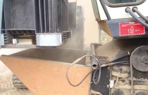 The stationary thresher worked so well with clover that Ravenkamp decided to try organic alfalfa seed. Like the clover, it was mixed with non-seed material.