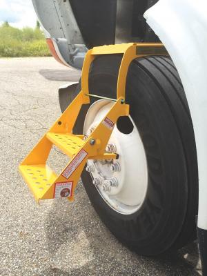 “The Tire Step helps you access places on trucks and other equipment that are hard to reach,” says Aaron DeWard of Unique Truck Equipment in Grand Rapids, Michigan. “While some people get tempted to stand on top of tires, we’d rather give you some stability and prevent falls.”