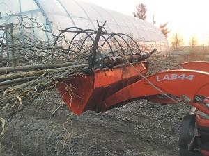 “I tried them out on a bunch of branches the first time I used them, and they worked better than I expected,” says Tschetter. “When I tip the bucket forward, they fall down over the material in the bucket.”