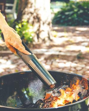 The Looft Lighter I costs $69 and comes with a cord that’s 9.8 ft. (3 m) long. It can light old charcoal and new with 1200 F superheated air and has an aluminum heat shield that is cool to the touch within minutes of use. A built-in fan spreads the flame around the charcoal for fast, even heating without the chemical taste that’s associated with using lighter fluid or starter cubes. Also included is a stand and bottle opener for extra convenience.