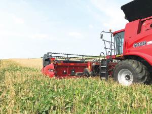 “We harvest the rye in mid-July when it’s about 4 ft. tall,” says Hora. “We have to manually control the header, as there’s only about 15 in. clearance over the soybeans. We follow harvest with a single herbicide pass of Roundup to clean up the field.”