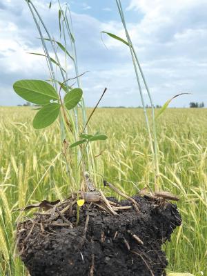 “The soybeans nodulate more, and then the harvested rye releases sequestered nutrients in August and September when the soybeans need it the most,” says Hora.