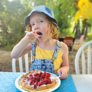 “I was at the farm show in Regina last year when I saw a double waffle maker,” he recalls. “We like waffles, so I bought it for our family’s use. However, when I called home from the road, I said I bought it for the strawberry stand so we could make and sell waffles.”