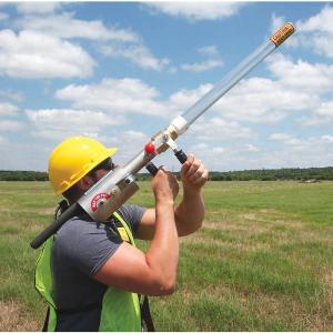 The Arborist Shoulder Shot shoots a 12-oz. bag up to a 250 ft. vertical distance with high accuracy. A lightweight throwline is attached to the bag. Once it reaches its targeted position, it’s attached to a heavier safety rope, which is then pulled into place.